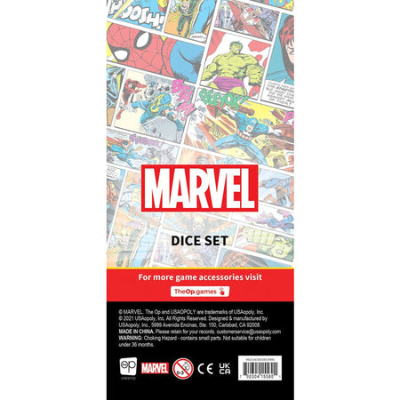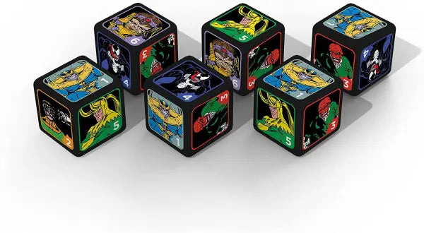Take supervillains to your next game night with this Marvel universe-approved set of dice! This 6-sided dice set features your favorite planetary evildoers including Thanos, Venom, Doctor Octopus, Red Skull, MODOK, and Loki in classic Marvel comic style.