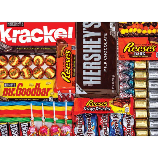 This MasterPieces 1000-piece Hershey's puzzle is full of indulgingly sweet images of a variety of Hershey's chocolates and is made with the chocolate lover in mind. All the puzzles in the Hershey's collection are the perfect gift for any sweet-toothed friend or family member. To reduce its impact on our environment, the chipboard used in this puzzle is made of 100% recycled material.