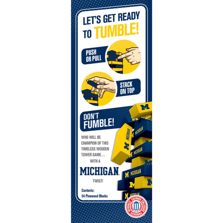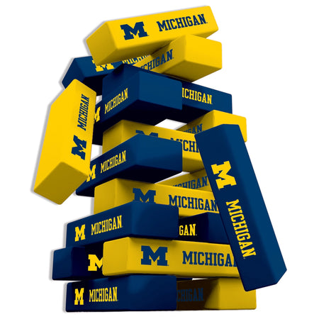 Enjoy this classic wooden NCAA Team Tumble Tower game featuring 54 NCAA team themed wooden blocks. Be the last player to stack a block without causing the tower to tumble… the higher the tower grows, the harder the challenge!