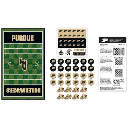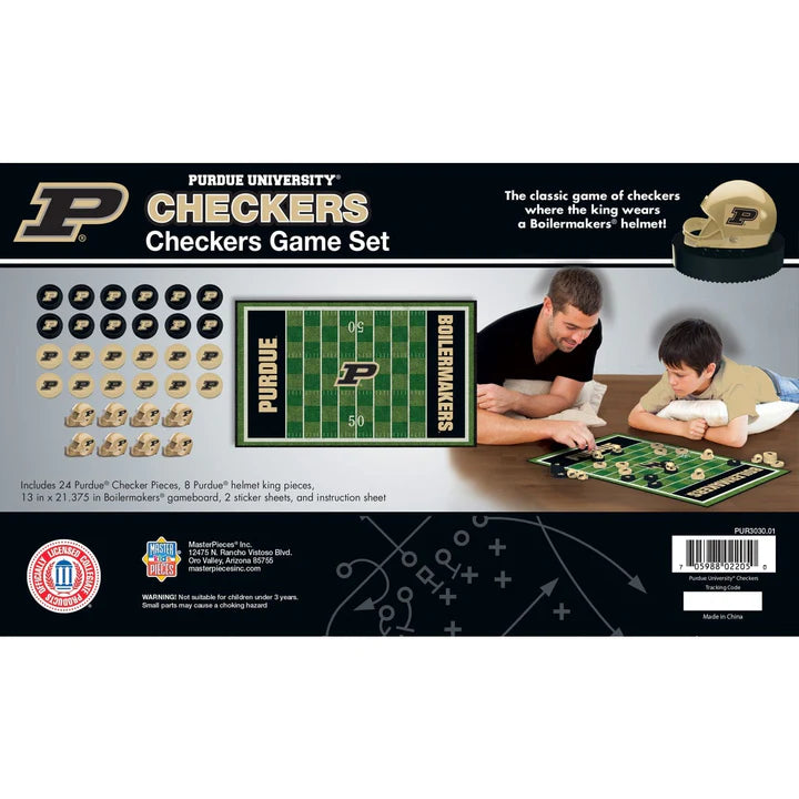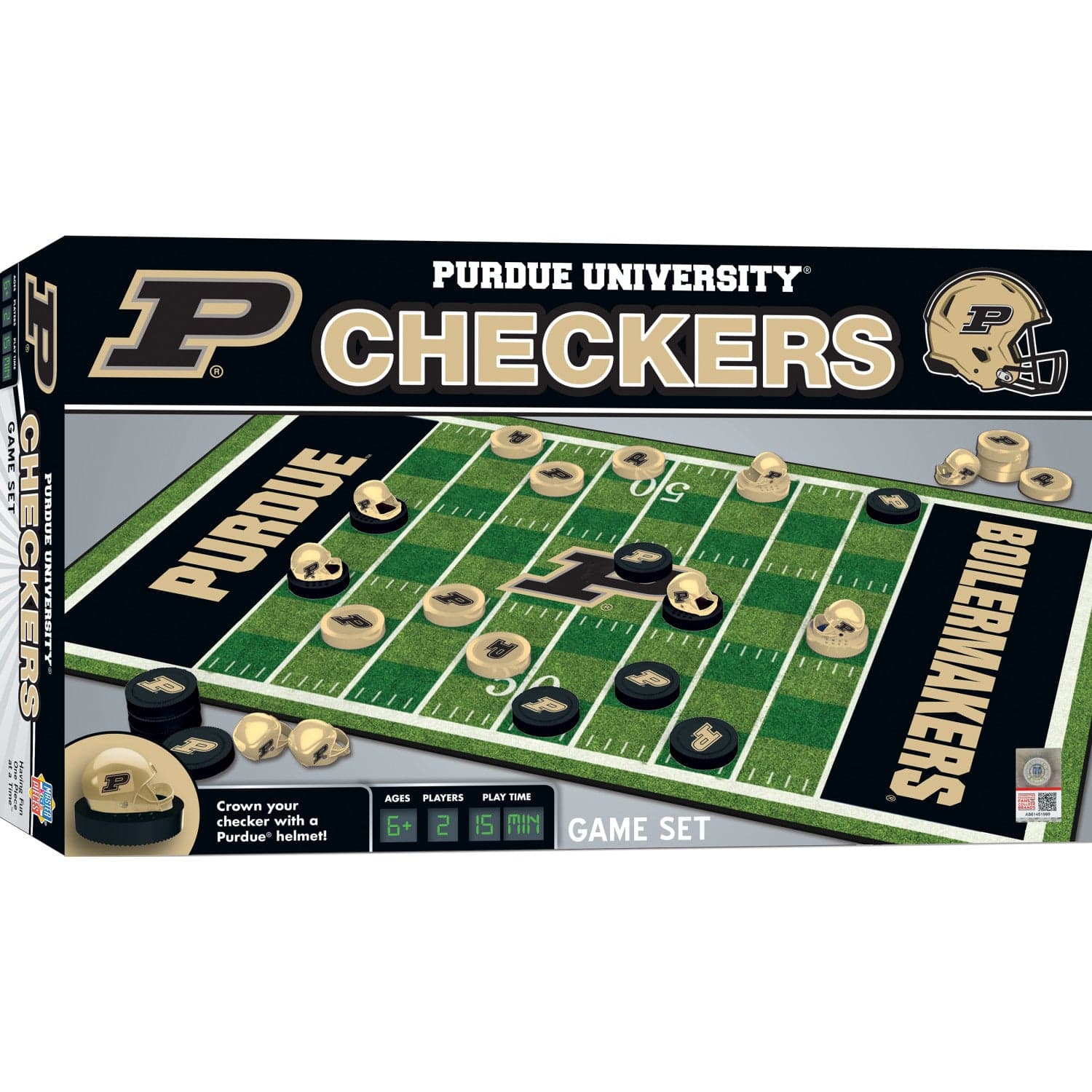 If you're a fan of the Purdue Boilermakers, then you're going to love this officially licensed MasterPieces NCAA Purdue Boilermakers Checkers Board Game. This classic game of checkers is a ton of fun for children and adults ages 6 and up, and it's a great way to show your Purdue Boilermakers pride. This checkers game comes with 24 Purdue Boilermakers checkers pieces, 8 helmet king pieces, a 13 inches x 21.375 inches game board, 1 sticker sheet, and an instruction sheet. So get ready to put your skills to the test and crown yourself the checkers champion!