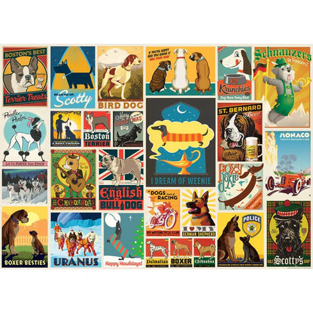 Unleash the joy of man's best friend with our charming 1,000-piece puzzle. Carefully curated from nostalgic posters of various dog breeds, this puzzle is an affectionate tribute to our furry companions and the timeless bond we share with them. Designed in a retro style, these posters hark back to a time of classic elegance, capturing the essence of each breed with a touch of nostalgia. Crafted from high-quality 100% recycled materials, this puzzle reflects our commitment to our four-legged friends and the environment they inhabit.