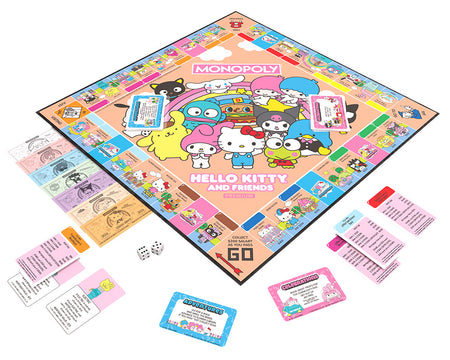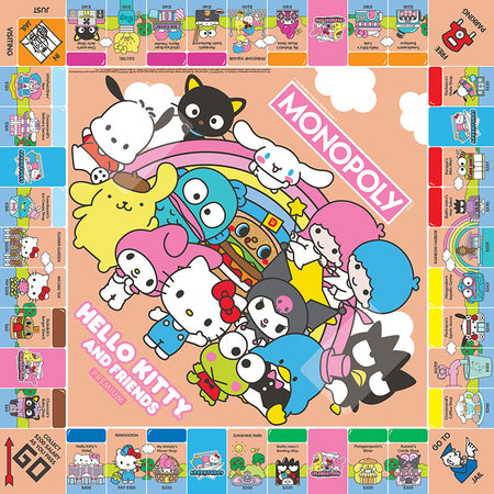 You can never have too many friends! Join Sanrio's universally adored icon with the ultimate game for Hello Kitty fans! MONOPOLY: Hello Kitty and Friends Premium Edition lets you buy, sell, and trade locations where all your favorite characters work and play in this exclusive version of the classic game featuring My Melody, Keroppi, Badtz-Maru, Chococat, Cinnamoroll, and many others. Upgraded collectible HELLO KITTY AND FRIENDS vehicle tokens shine with a rose gold finish, including a supercute bonus Crown with Bow token, all inside a rose gold foil-adorned box! Indulge in Celebrations and Adventures as you collect Kuromis Candy Shop, DokiDokis Burger Shack, and more to be the last player with custom HELLO KITTY AND FRIENDS currency to win!