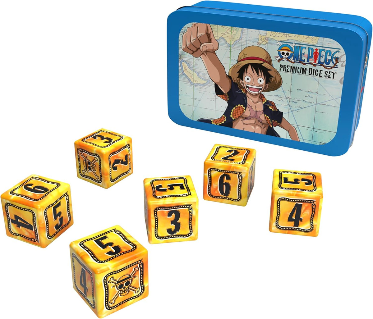 - Collectible One Piece 6-sided dice set featuring designs inspired by the vibrant world of pirates - including a collectible tin carrying case featuring Monkey D Luffy
