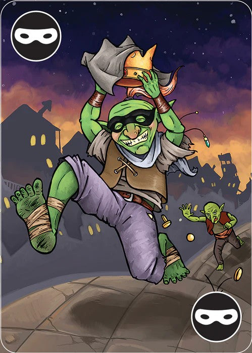 Use your card abilities to spy on or steal from other players. Once you have the crown, cast suspicion on others and bluff your way to victory. If you still have the crown in your grubby little hands at the end of the game, you are the rightful ruler of all goblins!