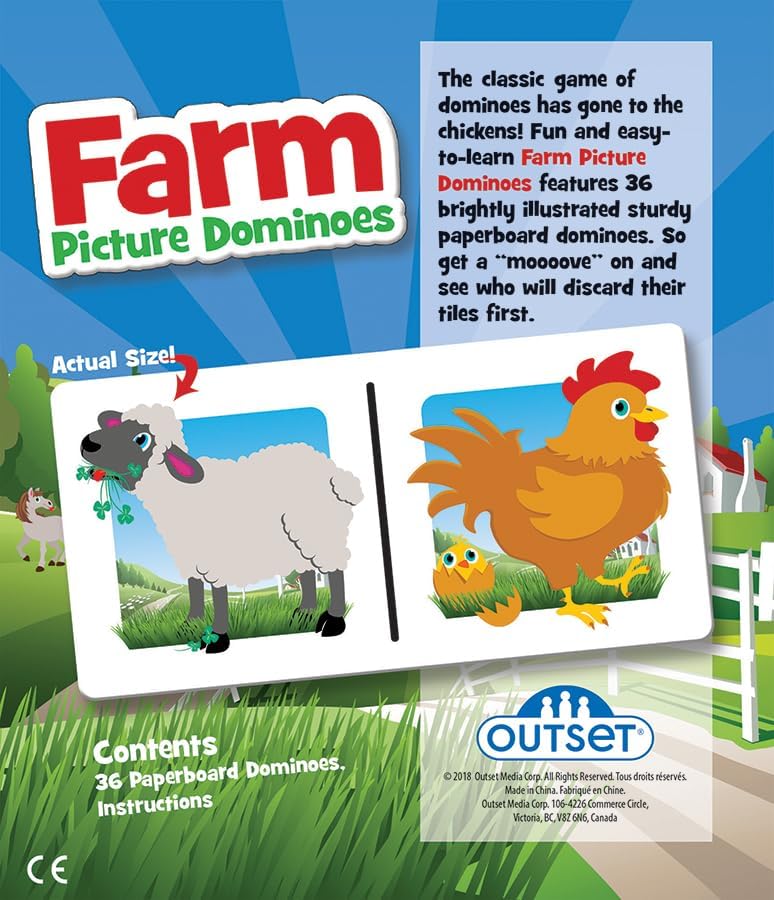 - Each game contains 36 illustrated dominoes of farm animals