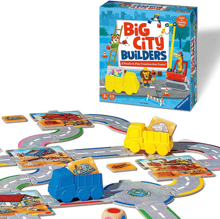- HIGH-QUALITY COMPONENTS: The game comes with a color die, 2 truck movers, 24 road puzzle pieces, 6 construction sites, 12 material tiles, and instructions, providing a rich and engaging play experience.