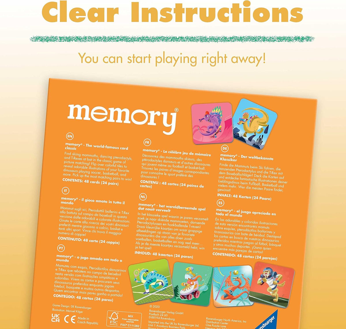- What you get – Dinosaur Sports Memory game comes with 48 tiles and instructions.