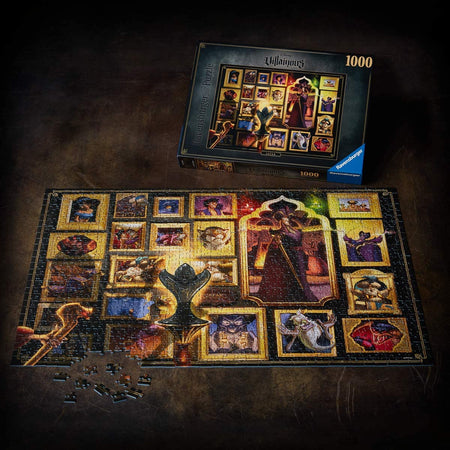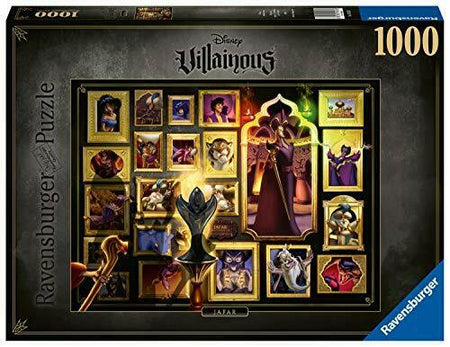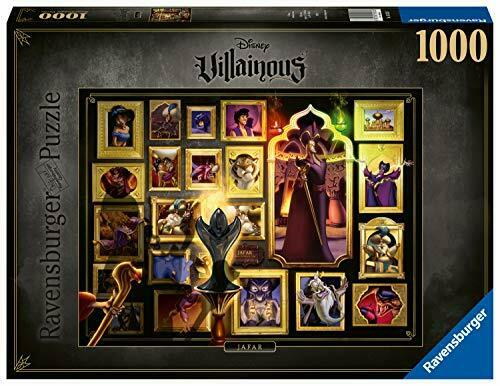 Piece together this 1000-piece puzzle featuring Jafar, the Grand Vizier of Agrabah and Aladdin's magical foe. Assemble the puzzle to reveal iconic scenes of the frightening and powerful Jafar, as well as some favorite characters like Aladdin, Jasmin, Genie and many more. All Villainous puzzles are based on the award-winning family game "Villainous" by Ravensburger. Enjoy puzzling the magnificent realms of your favorite Disney Villains. Watch as the wicked ways, sinister spells, and devious deeds unfold as each piece is connected. Collect and build all six!