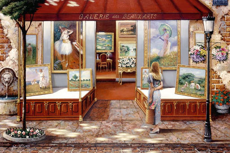 Peruse the stunning impressionist-style paintings as you stroll along a quiet Parisian avenue and puzzle our lovely “Gallery of Fine Arts”!