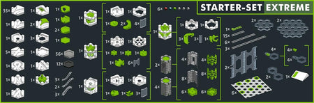 - [GraviTrax PRO: Extreme Set] Take your marble run to the edge with the “GraviTrax PRO Extreme Starter-Set”! This set includes 194 pieces to help build your marble run.
