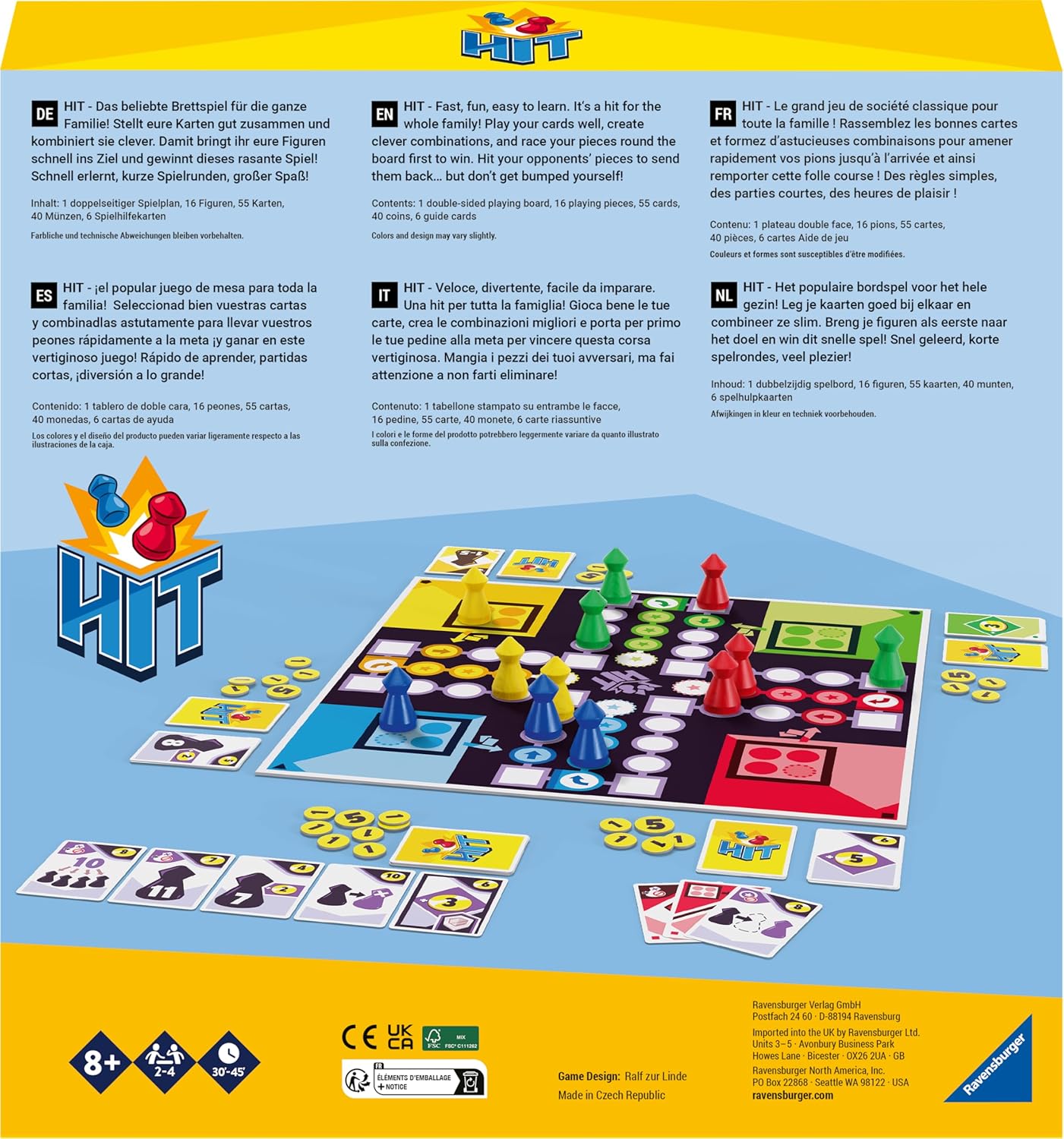 - HIT offers a clever mix of classic board game and super-light deck-building elements. Even children from 8 years old can easily join in. Everyone starts with the same cards, but during the game, individual moves can be added.