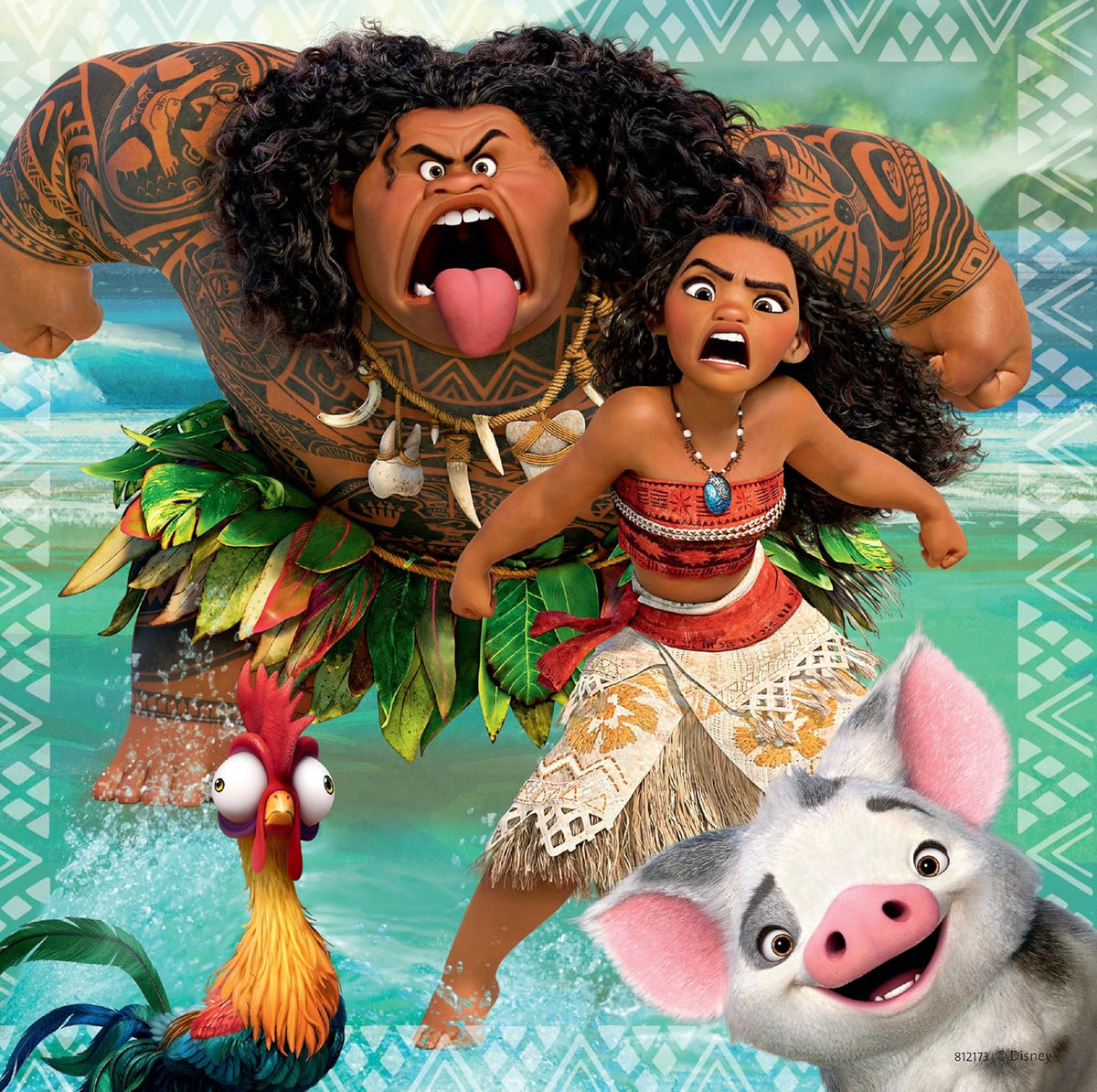Take a voyage with Moana and Maui from Disney's hit film! Three fun puzzles featuring characters from Disney's Moana. Each puzzle has 49 pieces and measures 8x8" when finished. For ages 5 and up.