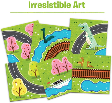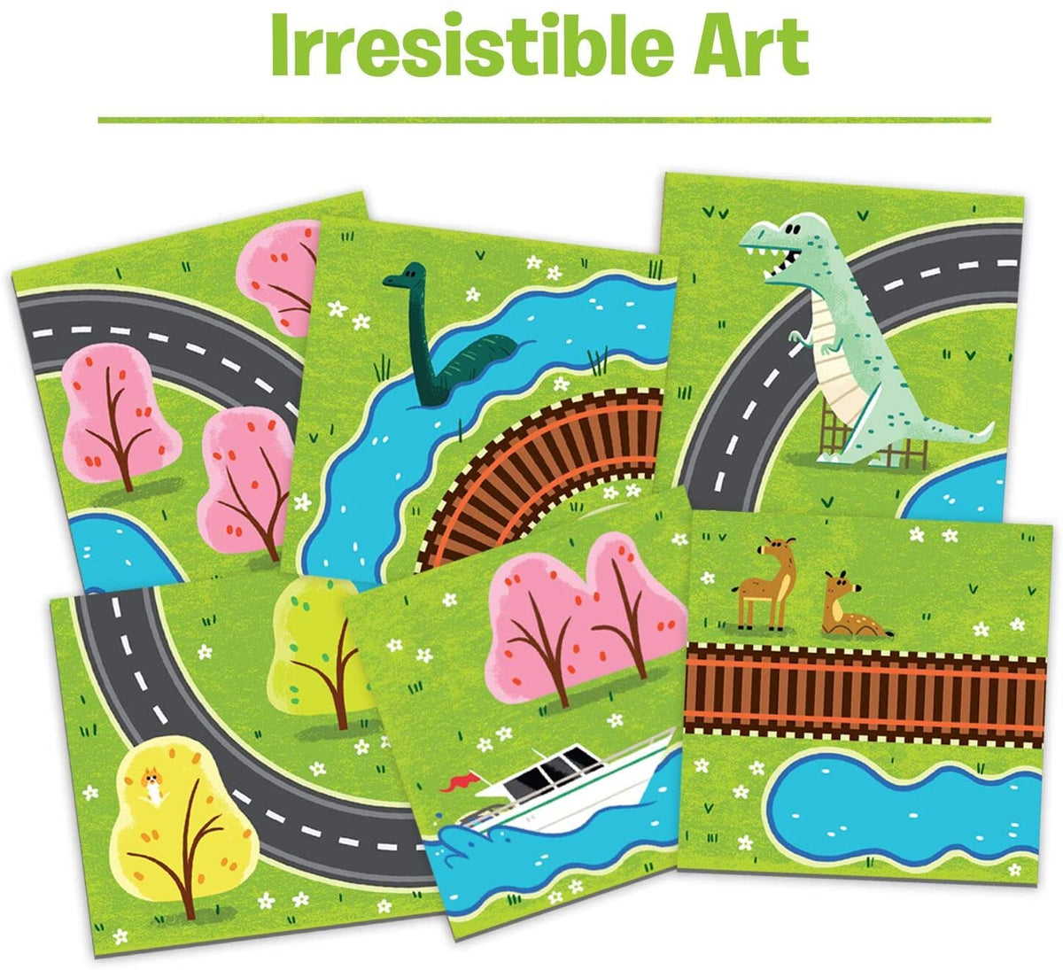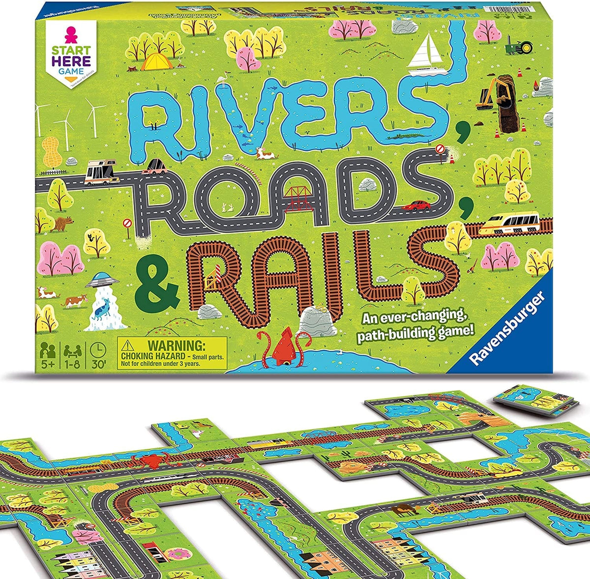 Rivers, Roads & Rails is a transportation-themed card matching game that puts kids in the driver's seat. Players build an ever-changing transportation network that includes rivers, roads and railroad tracks on which ships, cars and trains can move freely. Each card must connect perfectly to the next, providing the proper pathway for the vehicles to travel. In Rivers, Roads & Rails, players build an intricate transportation network for boats, cars and trains. The pathway cards must match precisely, and the first player to use up all of their cards wins. What's In The Box? 140 illustrated scenery cards, 1 set of instructions.