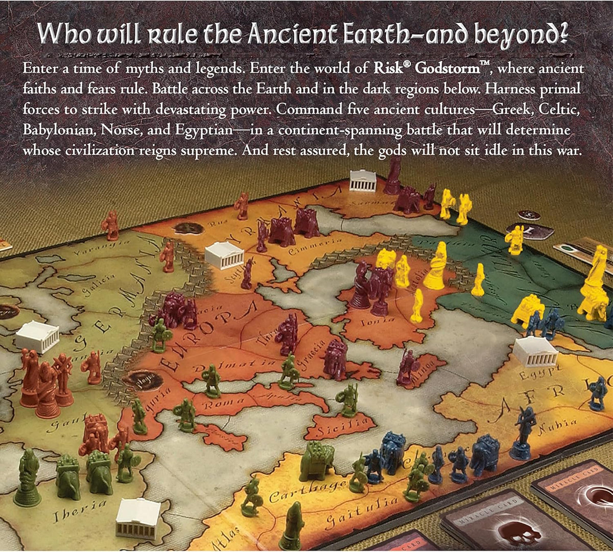 Who will rule the Ancient Earth - and beyond? Enter a time of myths and legends. Enter the world of Risk Godstorm, where ancient faiths and fears rule. Battle across the Earth and in the dark regions below. .