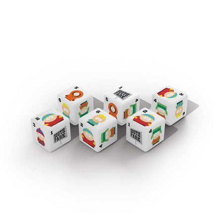 Take your favorite animated bus stop boys to your next game night with this South Park-approved set of dice! This 6-sided dice set features Kyle, Cartman, Stan, Butters, Kenny, and the city’s sign logo, true to the classic cartoon’s style.