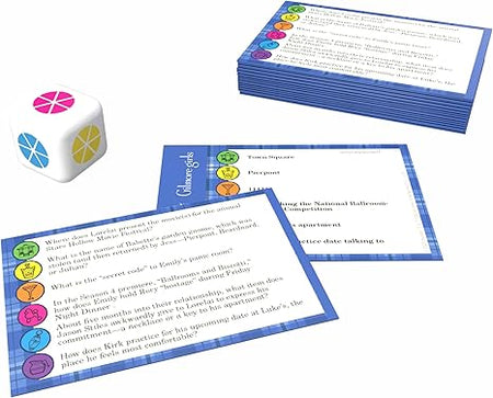 - 100 Question Cards (Categories: The Gilmore Family, The Girls, Dating 101, All Around Town Do you want coffee with your Coffee, Potluck)