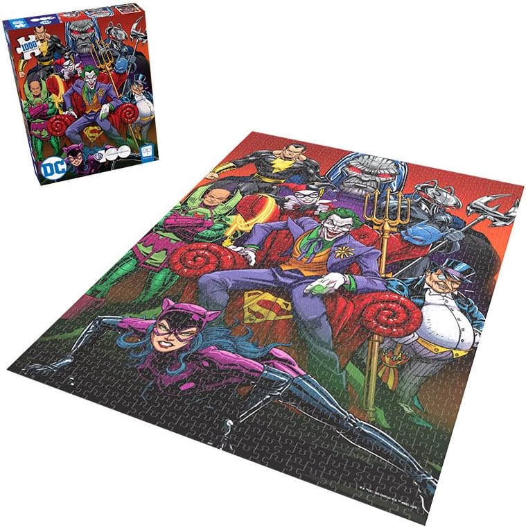 - Piece together this collectible jigsaw puzzle featuring some of the biggest villains from the DC Comics universe and The Justice League's biggest foes.