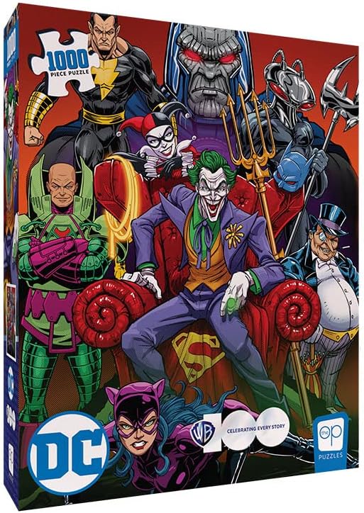 - Puzzle includes Joker, Harley Quinn, Lux Luthor, Black Adam, Penguin, Catwoman, and Black Manta.