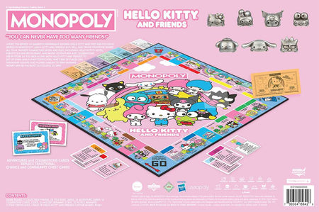 “You can never have too many friends!” Live by the words of Sanrio’s universally adored icon and join Hello Kitty in her colorful world with MONOPOLY: Hello Kitty and Friends! Buy, sell, and trade locations where all your favorite characters work and play in this all-new, custom version of the classic game featuring My Melody, Keroppi, Badtz-Maru, Chococat, Cinnamoroll, and many others. Seven collectible tokens feature Hello Kitty and Friends as the cutest vehicles, and Celebrations and Adventures are in store as you collect Kuromi’s Candy Shop, DokiDoki’s Burger Shack, and more to be the last player standing to win!