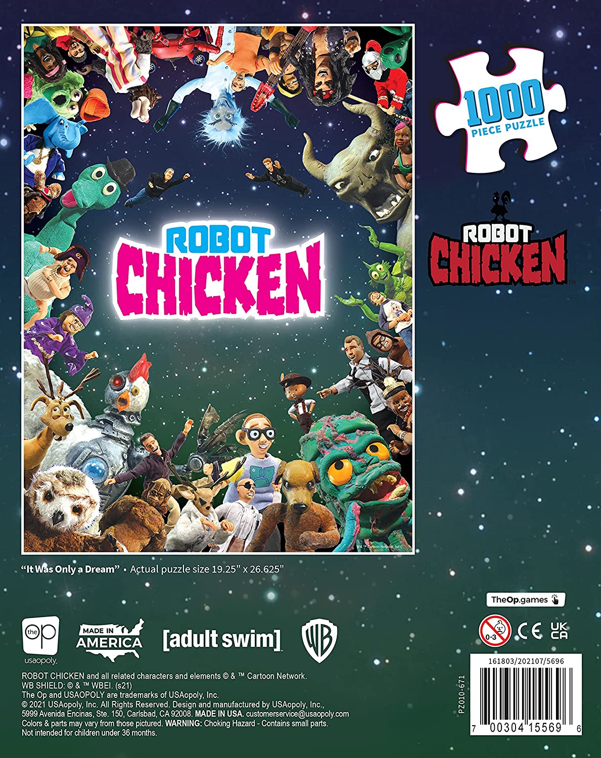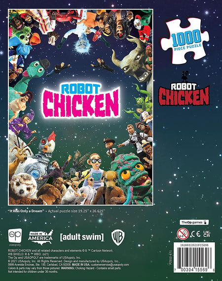- Piece together this collectible jigsaw puzzle featuring fan-favorite sketches, skits and bits from Adult Swim's Robot Chicken show.