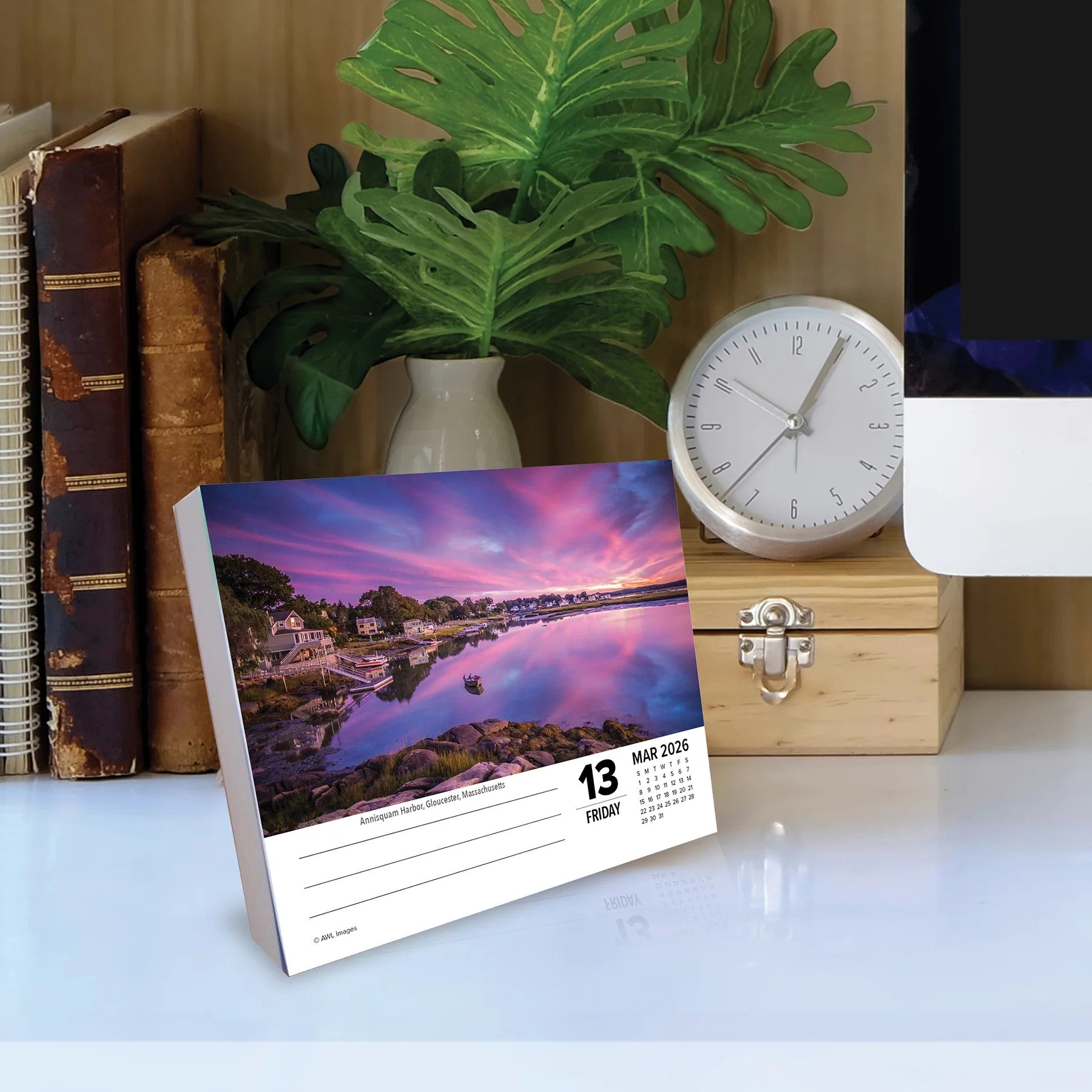 CAPTIVATING AMERICA – Journey through the breathtaking landscapes and landmarks that span the nation with these vibrant full-color photographs, celebrating the diverse natural beauty of our great land. Full-color images on easy tear-off pages are printed on high quality, FSC certified paper with soy-based inks. Pages are mounted on a recyclable stand for easy display. All major public and culturally significant holidays are included.