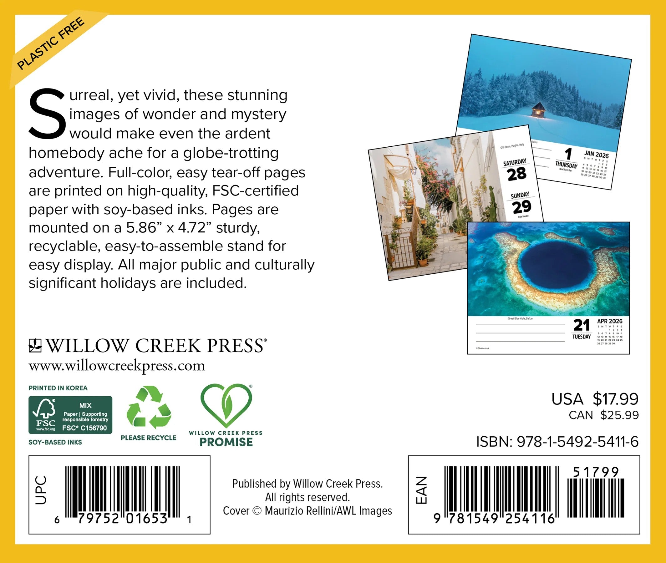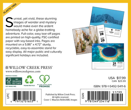 EXPLORE THE WORLD – Stay organized and inspired throughout the year with photos of breathtaking destinations, helping you dream and plan your next getaway. Full-color images on easy tear-off pages are printed on high quality, FSC certified paper with soy-based inks. Pages are mounted on a recyclable stand for easy display. All major public and culturally significant holidays are included.