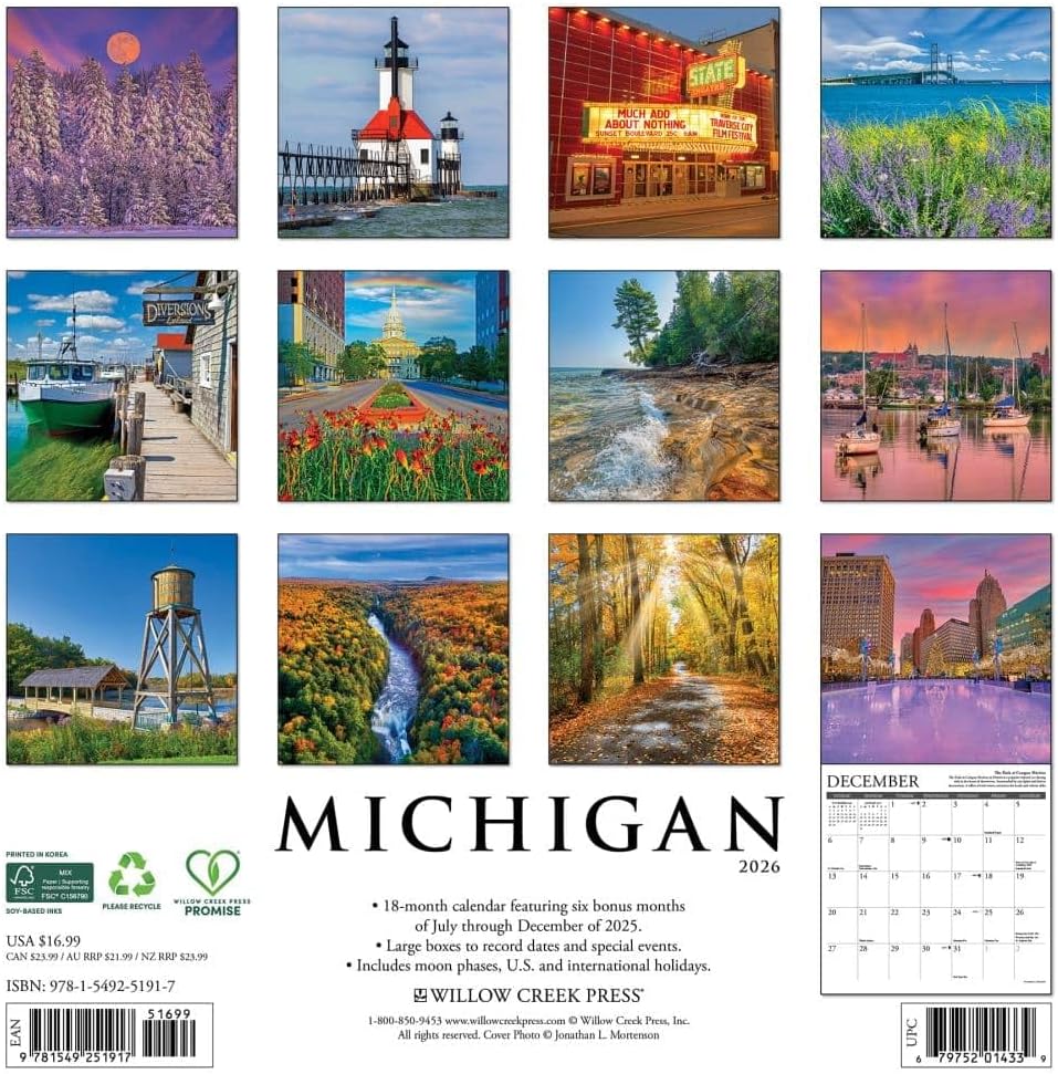 Willow Creek: Michigan: Travel and Events 2026 Wall Calendar