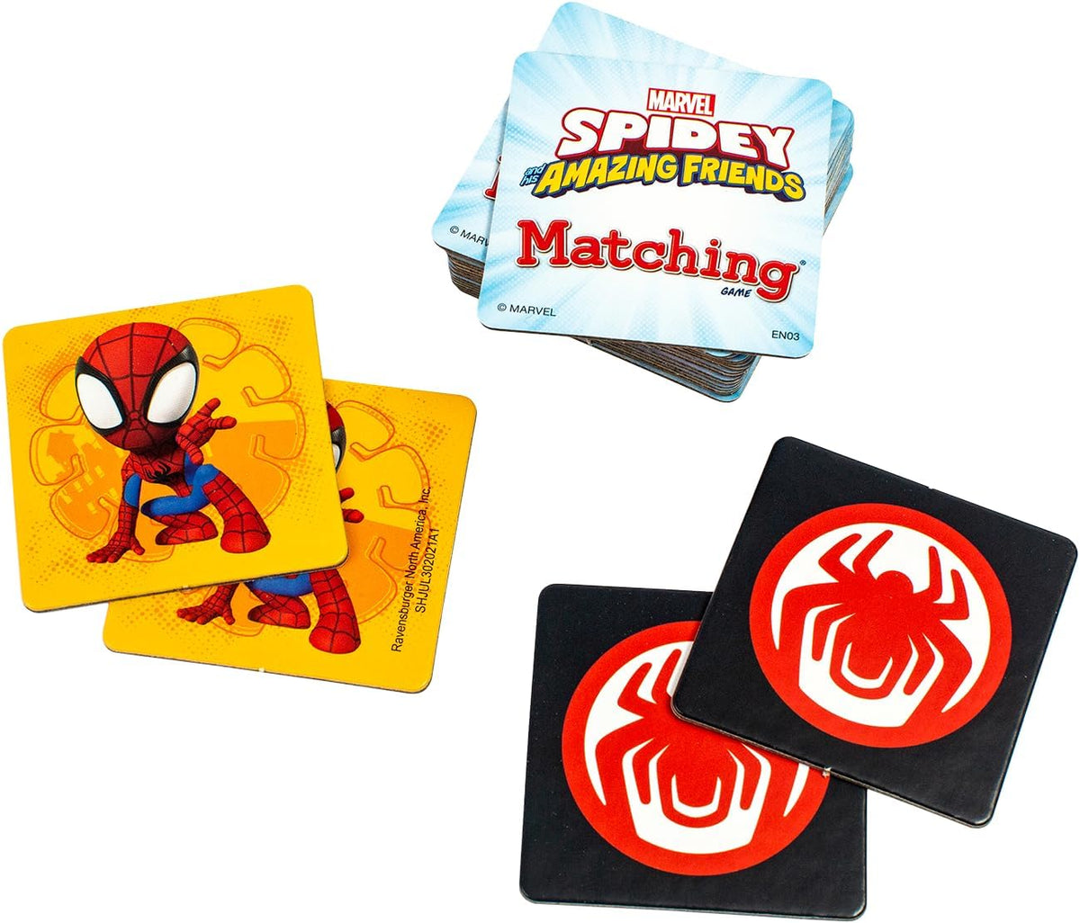 - PERFECT GIFT FOR SUPERHERO FANS: An exciting gift for birthdays, holidays, or any occasion, this matching game is sure to delight kids who love Marvel toys and Spidey and Friends adventures. Join the adventure with Marvel Spidey and His Amazing Friends Matching Game by Wonder Forge! This fast-paced memory game is perfect for preschoolers and families, combining fun superhero action with skill-building play. Match 72 vibrant tiles featuring beloved Marvel characters like Spidey, Ghost-Spider, Hulk, and Green Goblin as you enhance focus, memory, and matching skills.